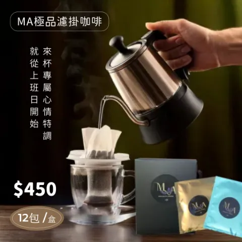MA極品濾掛咖啡-(超級黃金曼特寧/肯亞 AA/薇薇特南果/耶加雪菲 G1)(12包/盒)