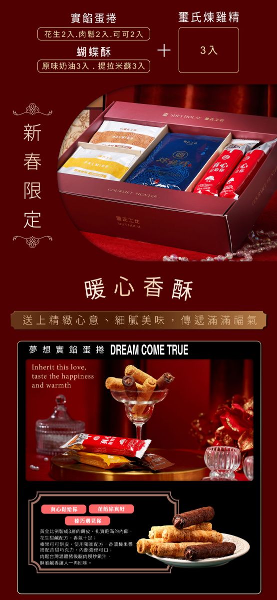 中秋預購 - 金酥璽提繩禮盒 (煉雞精X實餡蛋捲X蝴蝶酥)