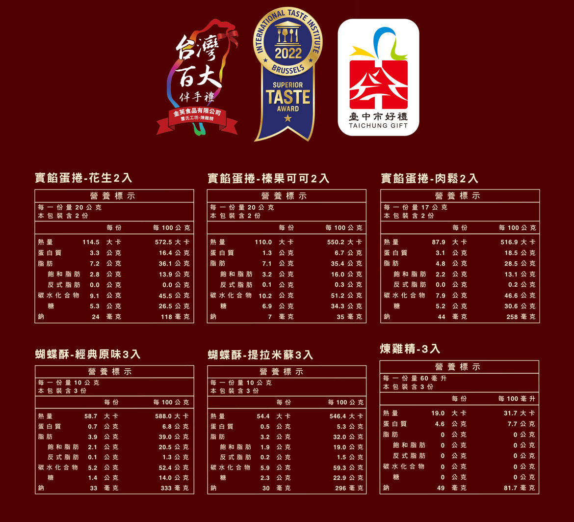 過敏源資訊:雞蛋、芝麻、牛奶、麩質之穀物及其製品。