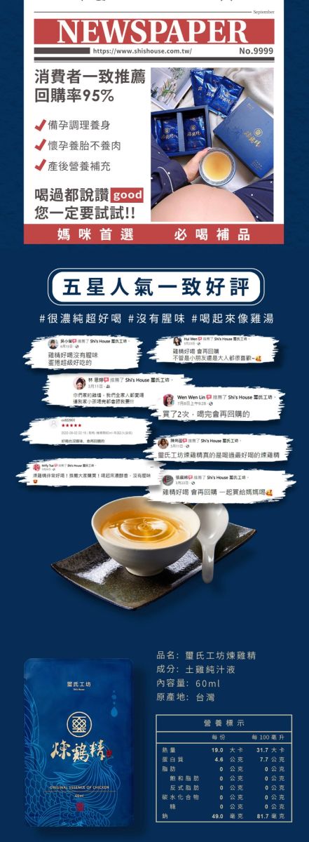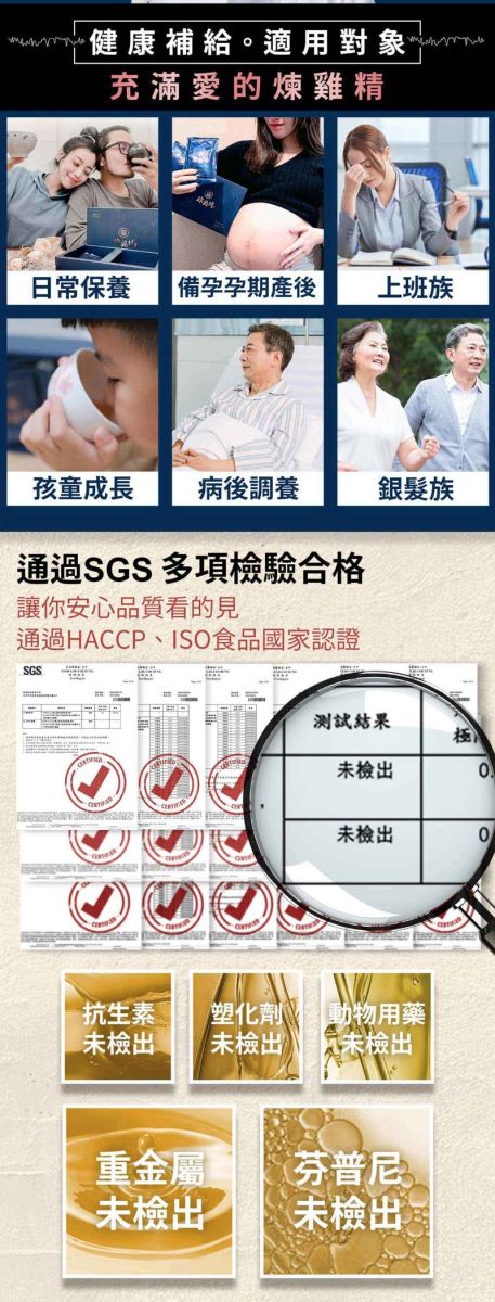 營養純粹:過濾多餘油脂與雜質,呈現香濃純粹的高品質煉雞精。