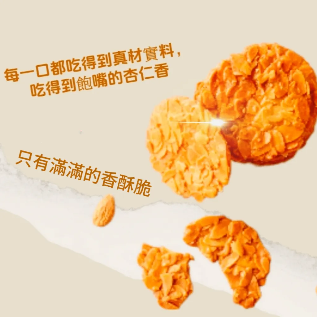 滿滿的杏仁片加上又香、又酥、的脆片口感,